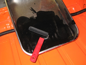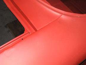 Nun gut, der übliche Arbeitsvorgang - Blechüberlappungen mit einer Spritze und Nadel mit verdünntem Priomat füllen, dann das restliche Blech gleichmäßig grundieren.