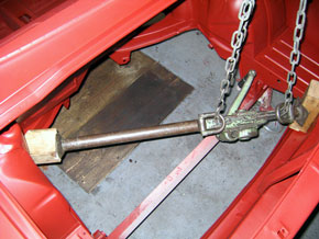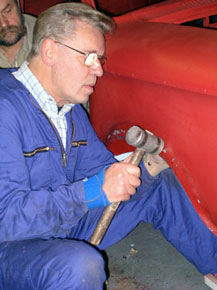 Ergebnis: Maßtoleranz von 3cm - geteilt durch zwei: das Heck war um 1,5 cm nach links gedrückt worden. Mein Clubkollege Gerd, seines Zeichens Profidengler, meinte nur - „werden wir schon hin bekommen“.
