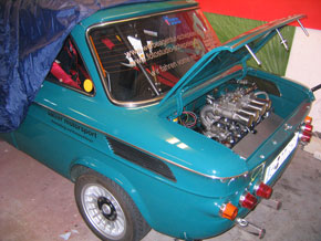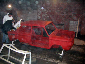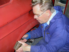 Ja, und wenn das dann mit Muskelkraft doch nicht gehen sollte, dann gibt es immer noch den Karosseriebau Otte in Gevelsberg. Hans-Peter Otte betreibt in Gevelsberg mit seinem Sohn Wolfgang und seiner Frau Cornelia einen Karosseriebetrieb. (Eigentlich ist jetzt Wolfgang der Chef, aber da geht eh alles Hand in Hand). Auf jeden Fall steht dort eine Richtbank für den Typ 67 in Kombination für Sportprinz und Spider.