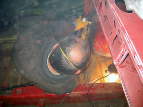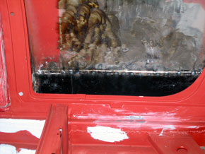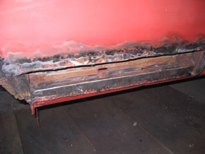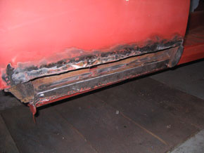Wurden beidseitig im unteren Bereich erneuert und großzügig übereinander "gebraten". Starker Verzug auf der Schweißnaht und Fläche. (Muss wieder getrennt werden und auf Stoß sauber verschweißt werden.)