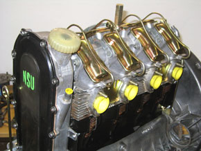Die bestellten Teile sind noch auf der Post, also geht es an der Elektrik weiter. Alle Kabel und Kabelenden sind mit Silikonentferner gereinigt worden. Die meisten Kabelschuhe sind bei NSU nicht isoliert, was einen nicht unbeträchtlichen Funkenflug nach sich ziehen könnte. Aus diesem Grunde wurden alle blanken Kabelenden mit Gummitüllen versehen. Dazu gibt es eine passende Dreizackzange, auf die kleine Gummischläuche gezogen werden. Mit der Zange werden sie geweitet und das zu isolierende Teil kommt dazwischen. Beim Entspannen der Zange umschließt weiches Gummi die Elektrik und schützt sie vor Problemen. Die Rückleuchten hatte Timo schon poliert und sie waren anbaufertig. Also einbauen. Weil jede Rückleuchte ihre Masse durch die Karosse erhält, ist Rost vorprogrammiert. Aus diesem Grunde haben wir alle Rückleuchten zusammen mit einem Massekabel versehen. Und weil es hinten so schön aussieht wurde vorne gleich weiter gemacht, da die Scheinwerfer auch schon fertig waren. Kabel anschließen, einführen, anschrauben - sieht echt gut aus. Weiter ging es am Kombischalter an der Lenksäule. Nach dem Schalt- und Bestückungsplan wurden Farben mit Nummern verbunden. Zu guter Letzt kam der Wischerschalter an die Reihe. Timo reinigte noch mit Kaltreiniger die Luftführungen des Motors. Vorbereitungen für den Motor in den nächsten Tagen. Die Tage werden weniger, die Arbeiten aber auch.