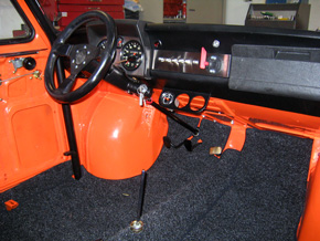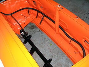 Die Post war noch nicht durch und die bestellten Teile somit noch nicht da. Also ging es an der Elektrik weiter. Letzte Kabel mussten noch verbunden und durchgemessen werden. Zwei Stunden lagen noch an und dann war es bis auf Kleinigkeiten geschafft. Der Handbremshebel und die Schaltstange bekamen einen neuen Lacküberzug. Das Scheibenwischergestänge bekam seinen Platz und das Stabiblech für das Windleitblech auch. Irgendwann kam dann auch die Post und mit ihr die erwarteten Teile. Die gelieferten Spurstangen kamen in ihre Löcher, Schalthebel und Handbremse wurden montiert und für die Züge vorbereitet. Irgendwie war es zehn Uhr abends geworden und man hatte immer noch kein Ende in Sicht. Nur irgendwann muss gut sein. Zur Vorbereitung für den nächsten Tag wurde dann aber noch der Tunnel mit Hohlraumversiegelung ausgespritzt.