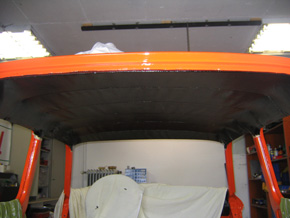 Heute sollen das Dach und die Seitenwände an die Reihe kommen. In gewohnter Weise gingen wir wieder ans Werk. 180er Schleifpapier und der "Negerkeks" von 3M kamen zum Einsatz. Im Großen und Ganzen eine unspektakuläre Angelegenheit. Großflächig wurde der alte Lack geschliffen und angeraut. Rostnester wurden mit der Grobschleifscheibe von 3M entfernt. Auf die org. Blechüberlappungen achteten wir besonders. Überall dort wo Bleche aufeinander lagen, Dachhaut, Anschlüsse der Kotflügel, im gesamten Fenstergummibereich schauten wir nach Rost - um ihn zu beseitigen - es gab aber fast keinen.