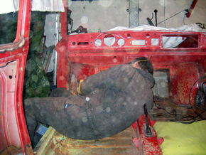 Was ist noch zu machen?: Fast der gesamte Innenraum, die Türen kpl., die Verglasung kpl., Tank mit Benzinleitung, Pumpe und Verkabelung, Bremssättel vorne, Bremsleitungen vorne und hinten, Vergaser, Auspuffanlage und so manche Kleinigkeiten.