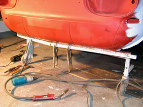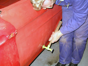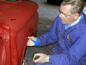 Ergebnis: Maßtoleranz von 3cm - geteilt durch zwei: das Heck war um 1,5 cm nach links gedrückt worden. Mein Clubkollege Gerd, seines Zeichens Profidengler, meinte nur - „werden wir schon hin bekommen“.