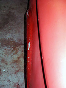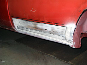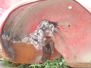 Wurden beidseitig im unteren Bereich erneuert und großzügig übereinander "gebraten". Starker Verzug auf der Schweißnaht und Fläche. (Muss wieder getrennt werden und auf Stoß sauber verschweißt werden.)