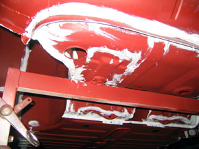 Zwischendurch wurde dann auch noch dauerelastisch mit OVER 4 SPG versiegelt. Radkästen, der Außenbereich des Unterbodens bis zu den Holmen und alle vorher schon dauerelastisch versiegelten Blechüberlappungen und Schweißnähte bekamen noch einen Unterbodenschutz. Hätte man vielleicht nicht unbedingt machen müssen, aber es dämpft halt Steinschläge. Näheres unter: