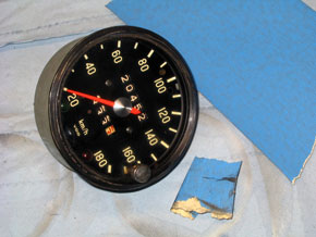 Es geht vorne weiter. Die Armaturen bedürfen einer Aufbereitung. Der Ring wird mit 500er Schmiergelpapier angerauht, möglichst nicht durchschleifen. Abkleben mit feinem Kreppband. Unter dem Ring abschließen, über das Glas und den Ring zukleben. Mit dem Daumennagel wird das Klebeband in die Kante zwischen Glas und Ring gedrückt und mit einem Scalpel wird dann ein feiner Schnitt in die Kante zwischen Glas und Rahmen gemacht, ohne die Gummidichtlippe zu verletzen. Handschuh an und mit mattschwarzer Sprühfarbe auslacken. Dreimal kurz, fertig. Zurück nach hinten, Motorträger einsetzen und ... schön. Wieder nach vorne. Die Armaturen werden eingeführt und von hinten verschraubt. Der unfertige Kombischalter mit Blink- und Lichtgeber wird zum Abrunden aufgesteckt. Haubenschlösser werden verbaut, hier ein Gummi, da eine Kleinigkeit. Timo hat den Bremstrommeln eine Schönheitskur verpasst und sie mit der großen, rotierenden Messingdrahtbürste gefinisht. Elf Stunden für mich und zwei Stunden für Timo - Ende. Morgen früh geht es weiter.