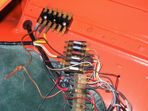 Die bestellten Teile sind noch auf der Post, also geht es an der Elektrik weiter. Alle Kabel und Kabelenden sind mit Silikonentferner gereinigt worden. Die meisten Kabelschuhe sind bei NSU nicht isoliert, was einen nicht unbeträchtlichen Funkenflug nach sich ziehen könnte. Aus diesem Grunde wurden alle blanken Kabelenden mit Gummitüllen versehen. Dazu gibt es eine passende Dreizackzange, auf die kleine Gummischläuche gezogen werden. Mit der Zange werden sie geweitet und das zu isolierende Teil kommt dazwischen. Beim Entspannen der Zange umschließt weiches Gummi die Elektrik und schützt sie vor Problemen. Die Rückleuchten hatte Timo schon poliert und sie waren anbaufertig. Also einbauen. Weil jede Rückleuchte ihre Masse durch die Karosse erhält, ist Rost vorprogrammiert. Aus diesem Grunde haben wir alle Rückleuchten zusammen mit einem Massekabel versehen. Und weil es hinten so schön aussieht wurde vorne gleich weiter gemacht, da die Scheinwerfer auch schon fertig waren. Kabel anschließen, einführen, anschrauben - sieht echt gut aus. Weiter ging es am Kombischalter an der Lenksäule. Nach dem Schalt- und Bestückungsplan wurden Farben mit Nummern verbunden. Zu guter Letzt kam der Wischerschalter an die Reihe. Timo reinigte noch mit Kaltreiniger die Luftführungen des Motors. Vorbereitungen für den Motor in den nächsten Tagen. Die Tage werden weniger, die Arbeiten aber auch.