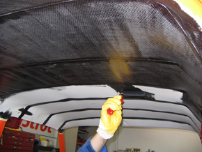 Heute sollen das Dach und die Seitenwände an die Reihe kommen. In gewohnter Weise gingen wir wieder ans Werk. 180er Schleifpapier und der "Negerkeks" von 3M kamen zum Einsatz. Im Großen und Ganzen eine unspektakuläre Angelegenheit. Großflächig wurde der alte Lack geschliffen und angeraut. Rostnester wurden mit der Grobschleifscheibe von 3M entfernt. Auf die org. Blechüberlappungen achteten wir besonders. Überall dort wo Bleche aufeinander lagen, Dachhaut, Anschlüsse der Kotflügel, im gesamten Fenstergummibereich schauten wir nach Rost - um ihn zu beseitigen - es gab aber fast keinen.