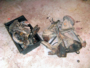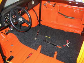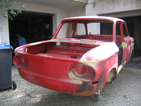 Was ist noch zu machen?: Fast der gesamte Innenraum, die Türen kpl., die Verglasung kpl., Tank mit Benzinleitung, Pumpe und Verkabelung, Bremssättel vorne, Bremsleitungen vorne und hinten, Vergaser, Auspuffanlage und so manche Kleinigkeiten.