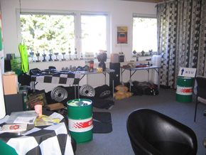 Vorbereitungen für den Einbau des Käfigs am morgigen Tag wurden getroffen. Die Pakete standen noch so verpackt wie sie gekommen waren. Wir hatten uns für einen Überrollkäfig der Firma Haigo entschieden, da in unserem grünen NSU bereits ein Überrollbügel von Haigo verbaut worden war und wir mit der Ausführung und Passform sehr zufrieden waren.