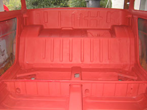 Reste der Abklebung und Farbüberstände werden beseitigt. Blicke in alle Ecken und Kanten sind erlaubt. Bis auf die verdeckten Flächen, wo die Aufnahme des Rollgestells gesessen hat und vielleicht noch die eine oder andere kleine, versteckte Ecke im Innenraum und Boden muß nichts mehr nachgebessert werden. Rundum eine sehr gute Arbeit. Tja, und was sagt man wenn man zufrieden ist?